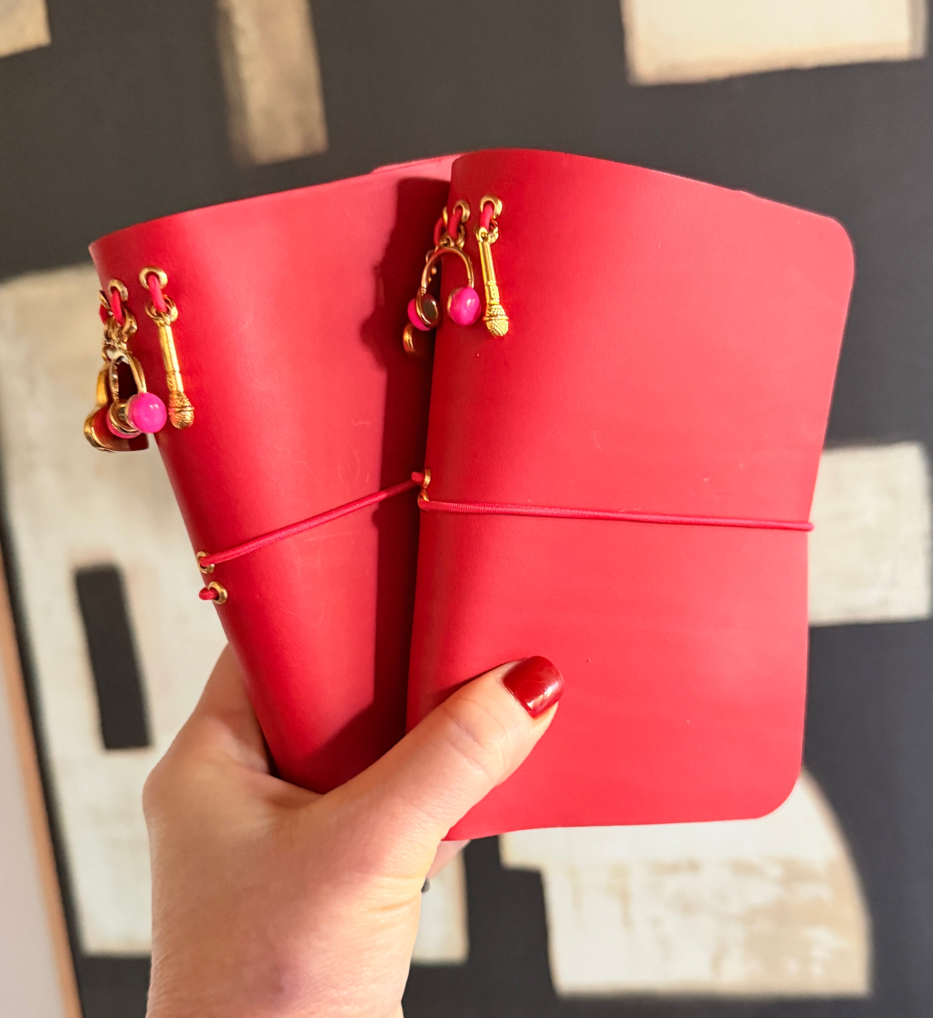 Begin by designing your custom journal and adding it to your cart. Afterward, select your charms to further personalize your piece. Each journal is then meticulously handcrafted and finished with the charms you’ve chosen.